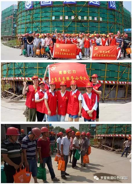 ▲黨員志愿者到建筑工地慰問建筑工人