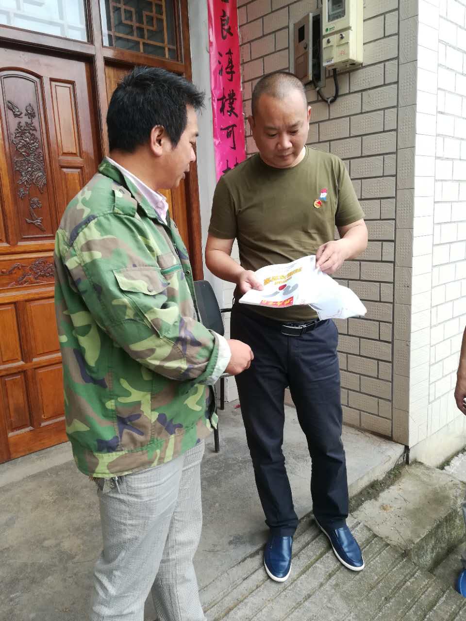 一連幾天的暴雨讓崎嶇的山路泥濘不堪,為了更好地了解偏遠(yuǎn)山村的雜志到達(dá)情況,楊波一行決定去一些高山山村看看。到達(dá)時(shí),正值林峰村黨員活動(dòng)日黨員們?cè)谇謇泶迩f,盡管經(jīng)歷山路十八彎的奔波,老楊他們二話不說也加入其中。